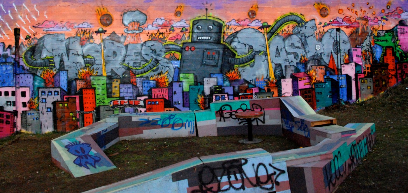 Artists quickly realized that this was their chance to express themselves, working tirelessly to create giant murals to color an otherwise grim city backdrop. People flocked to the park in the summer, and it soon became filled with families, bands, skaters, and artists all breathing a new life into this once desolate lot. The Heart Park was blossoming into a beautiful hip-hop butterfly. What started out as a vacant lot soon turned into a major outlet for street art. The lot itself became a work of art, a beautiful fusion of Nordic tradition and the street art of “1980’s New York City.”